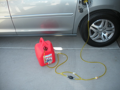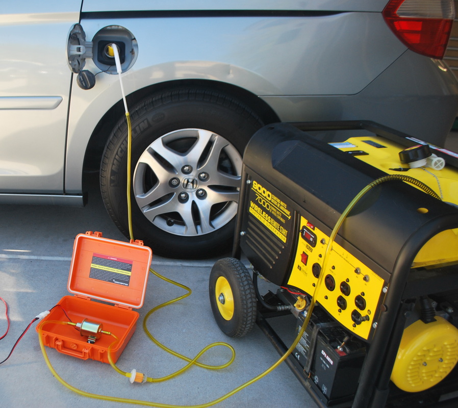 with GasTapperHave you ever considered how to transfer gas when its not readily available or when you need to move gas in and out of powered vehicles? If you could not get or conveniently transport gas from a fuel station to operate your vehicles, generators and other gear, what would you do? Most modern vehicles are equipped with 1-way spill prevention valves as a safety measure to prevent leakage during a rollover event. There was simply no easy and reliable way to transfer gas from a modern vehicle until the GasTapper.