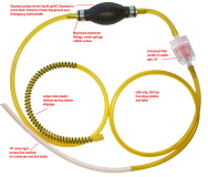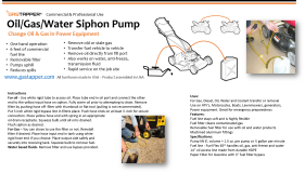 Capable of emptying the oil or gas in a typical lawn mower in about 10 seconds. Great to remove old gas form your power equipment. Comes with a semi 12" rigid 3/16 access line that will reach into the bottom of most crankcases to completely drain the oil. This product is also popular to carry with quads and motorcycles for emergency fuel transfer in the field.